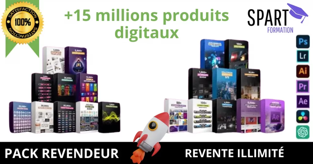 Débloquez un monde d’opportunités infinies avec notre Pack Digital, contenant plus de 15 millions de produits numériques à revendre.