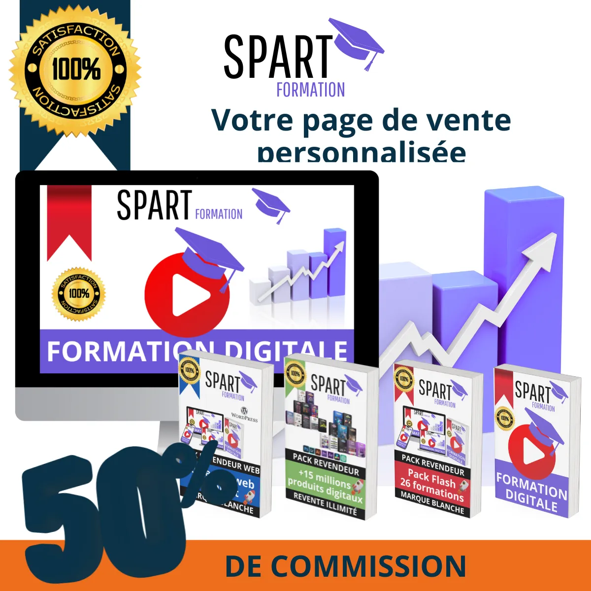 Vendez des produits directement depuis votre page de vente et gagnez 50% de commission sur chaque vente, tout en laissant Spart Formation gérer la logistique et le support client.